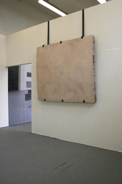 pulped newspaper, gypsum plaster.