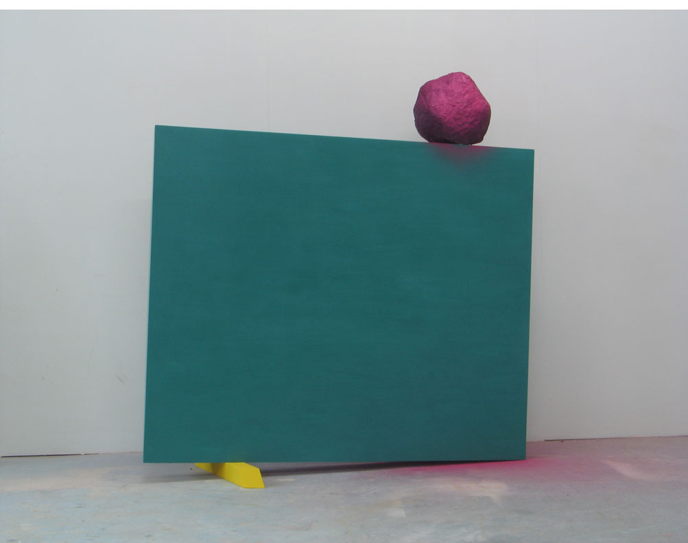 gesso on MDF and wood, distemper, expanded metal lath, pulped newspaper, Dylon fabric dye, spray-paint.