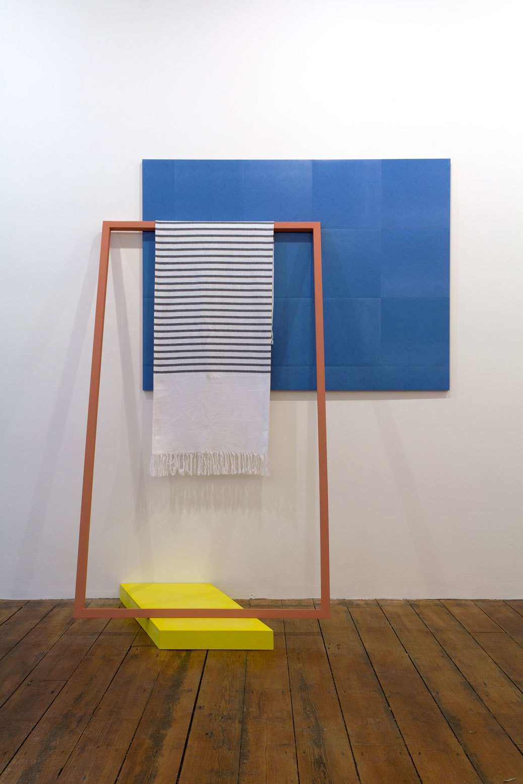 Plywood, vinyl floor tiles, gesso on Jelutong, distemper, plaster, watercolour, Hammam towel.