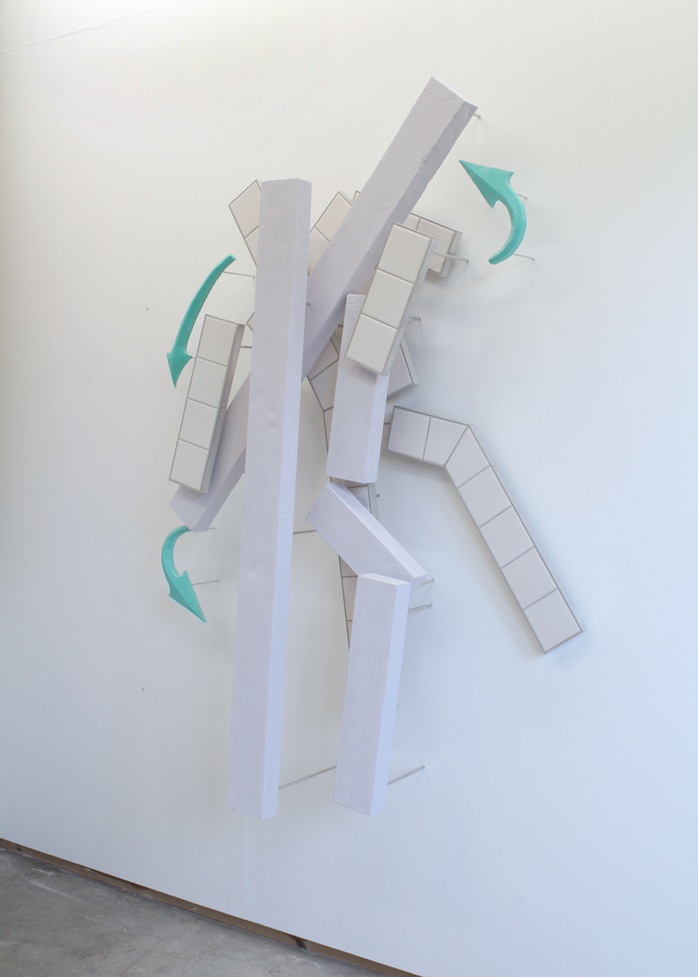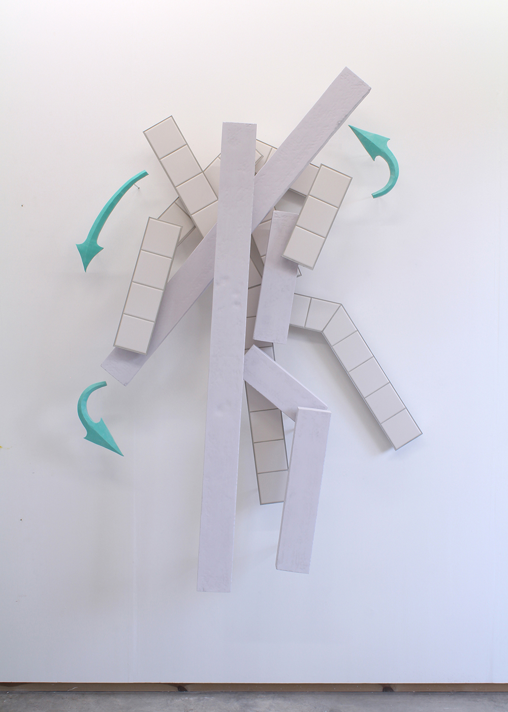 Jesmonite, MDF, ceramic tiles, grout and aluminium.